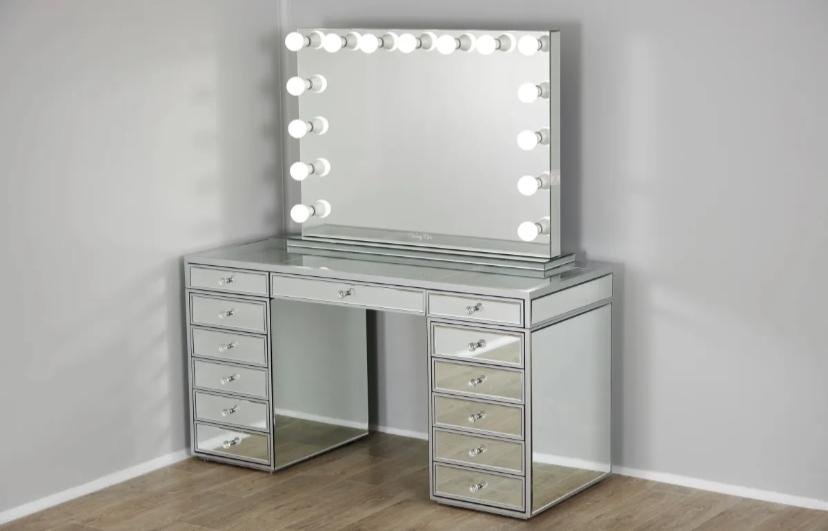 Alliant design moderne et technologie pratique, cette coiffeuse offre un espace raffiné et fonctionnel pour se maquiller, se coiffer ou se préparer avec élégance.