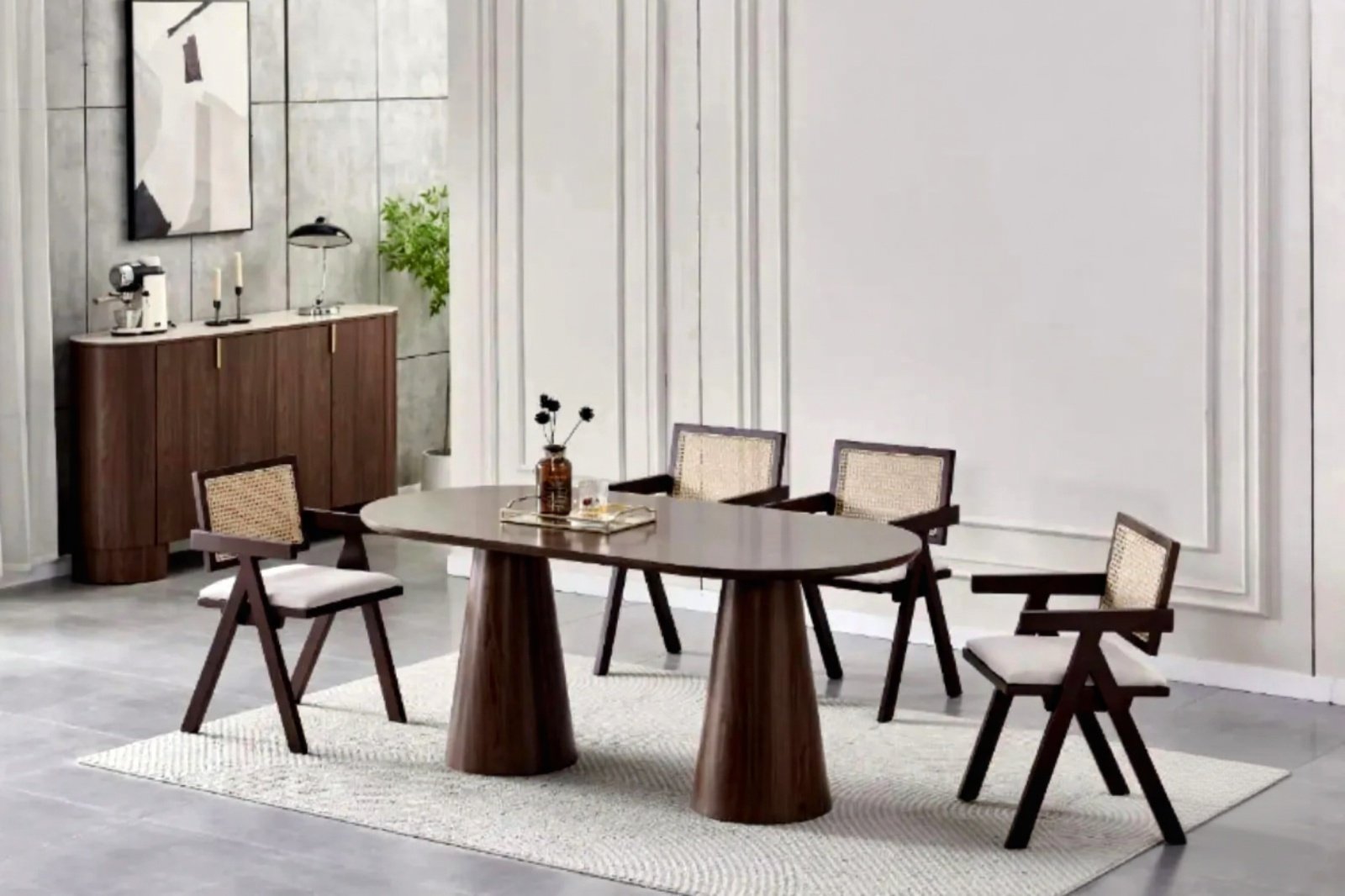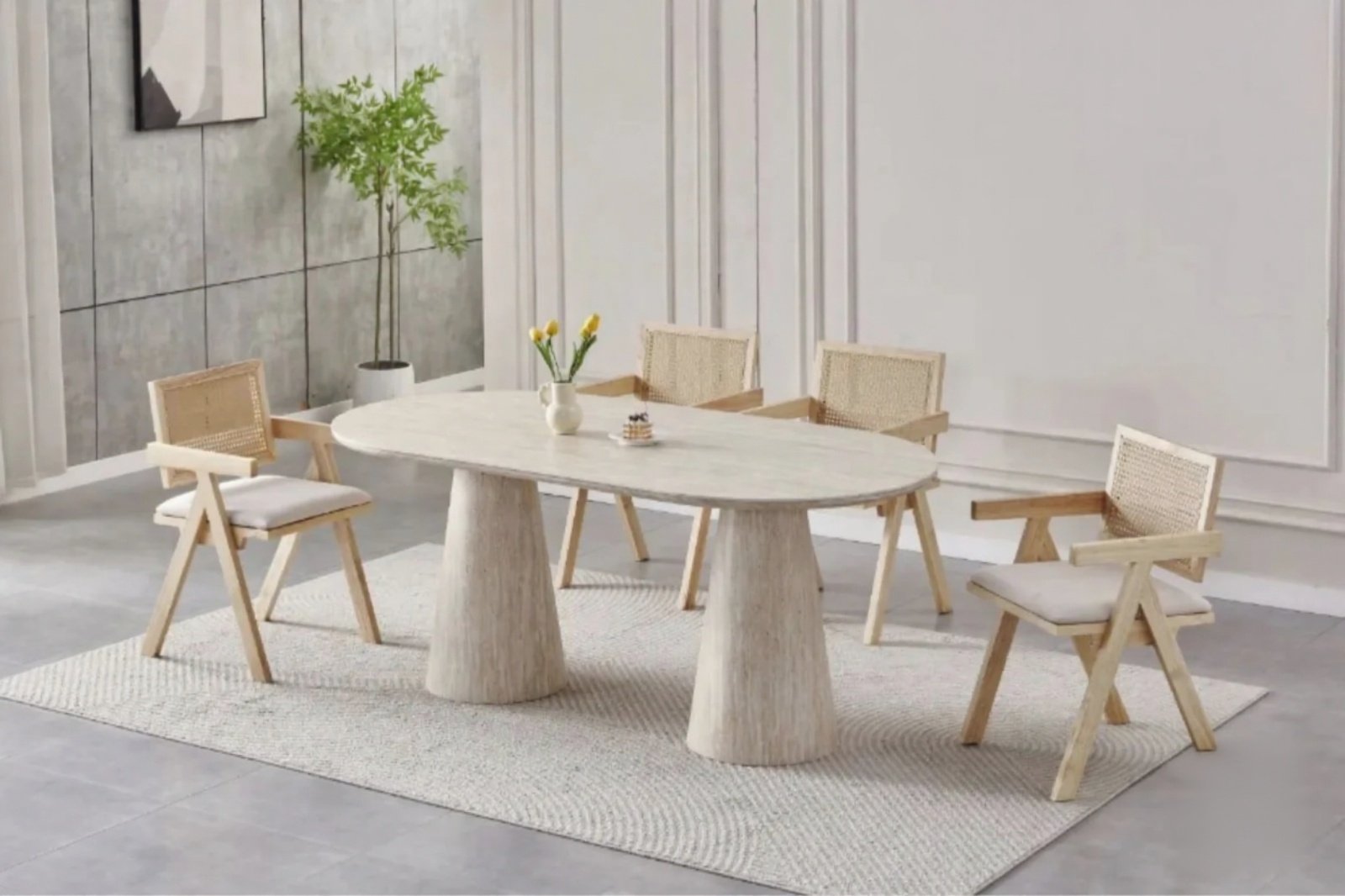 L’ensemble Iconic + chaises Rotina incarne l’équilibre parfait entre esthétique moderne et praticité, pour un espace repas à la fois élégant, chaleureux et fonctionnel.