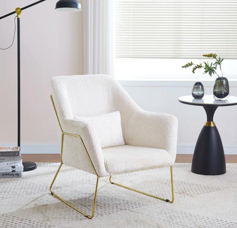FAUTEUIL BASKA – PIEDS GOLD & LAINE BEIGE