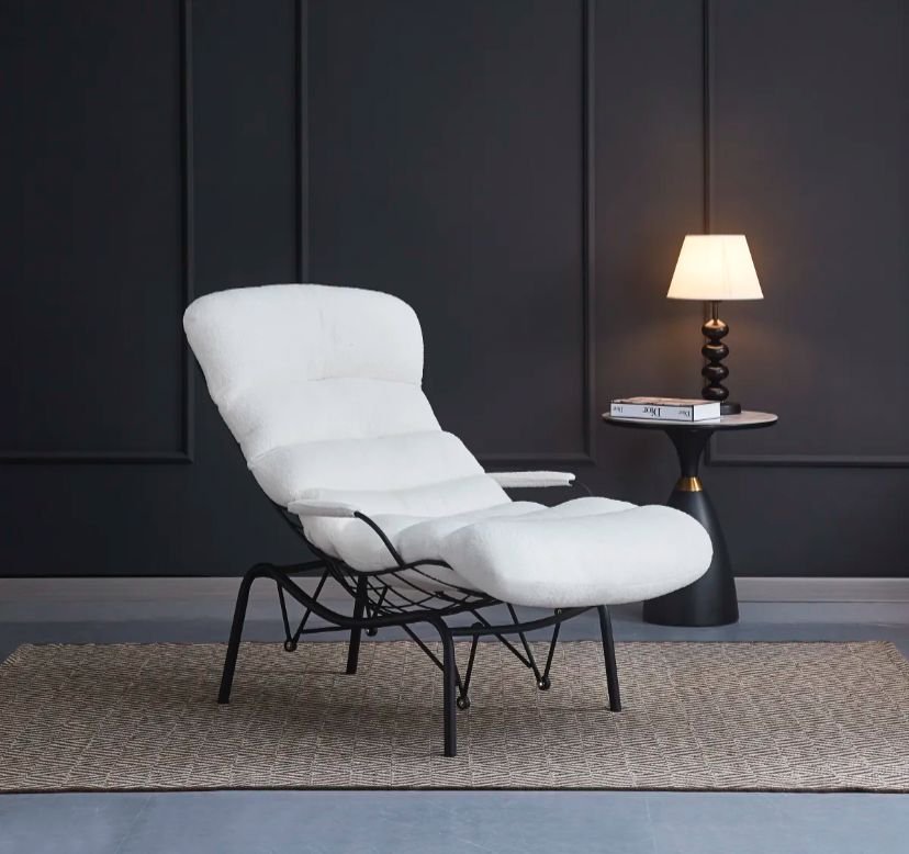 Sa structure en métal noir offre une stabilité élégante, tandis que son revêtement en tissu doudou blanc apporte une douceur incomparable et une touche cocooning à votre espace.
