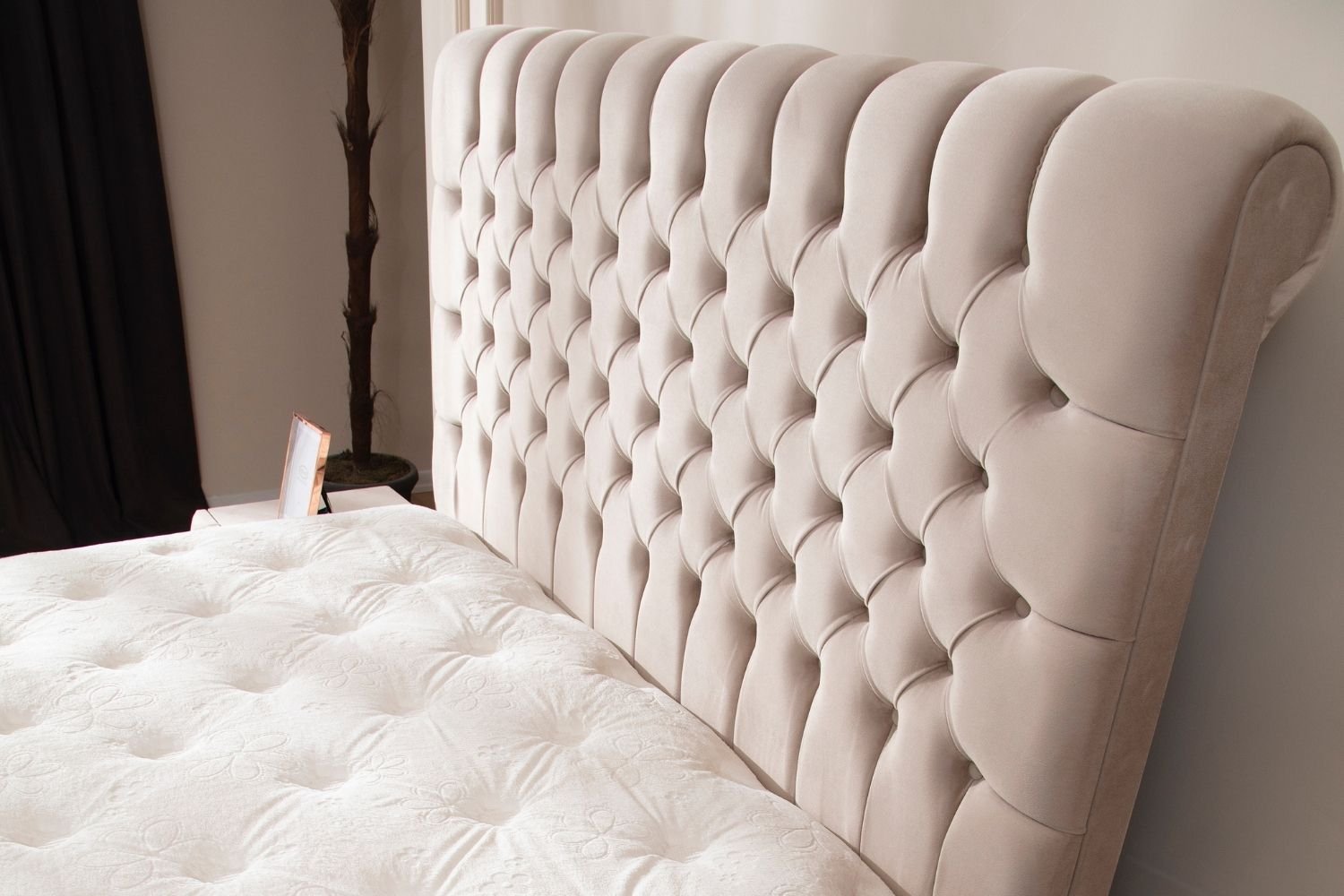 Your interior will be adorned with a regal and modern finish with the Luna double storage bed . Its anthracite gray velvet fabric, studded headboard , and metal legs bring elegance and charm to your room. Thanks to its double storage compartment, this velvet-upholstered bed provides ample space for storing your throws, sheets, cushions, and duvets. This double bed will appeal to you even more with its three available sizes: 140×190 cm, 160×200 cm, and 180×200 cm . A soft and comfortable night awaits you with your Luna double storage bed.