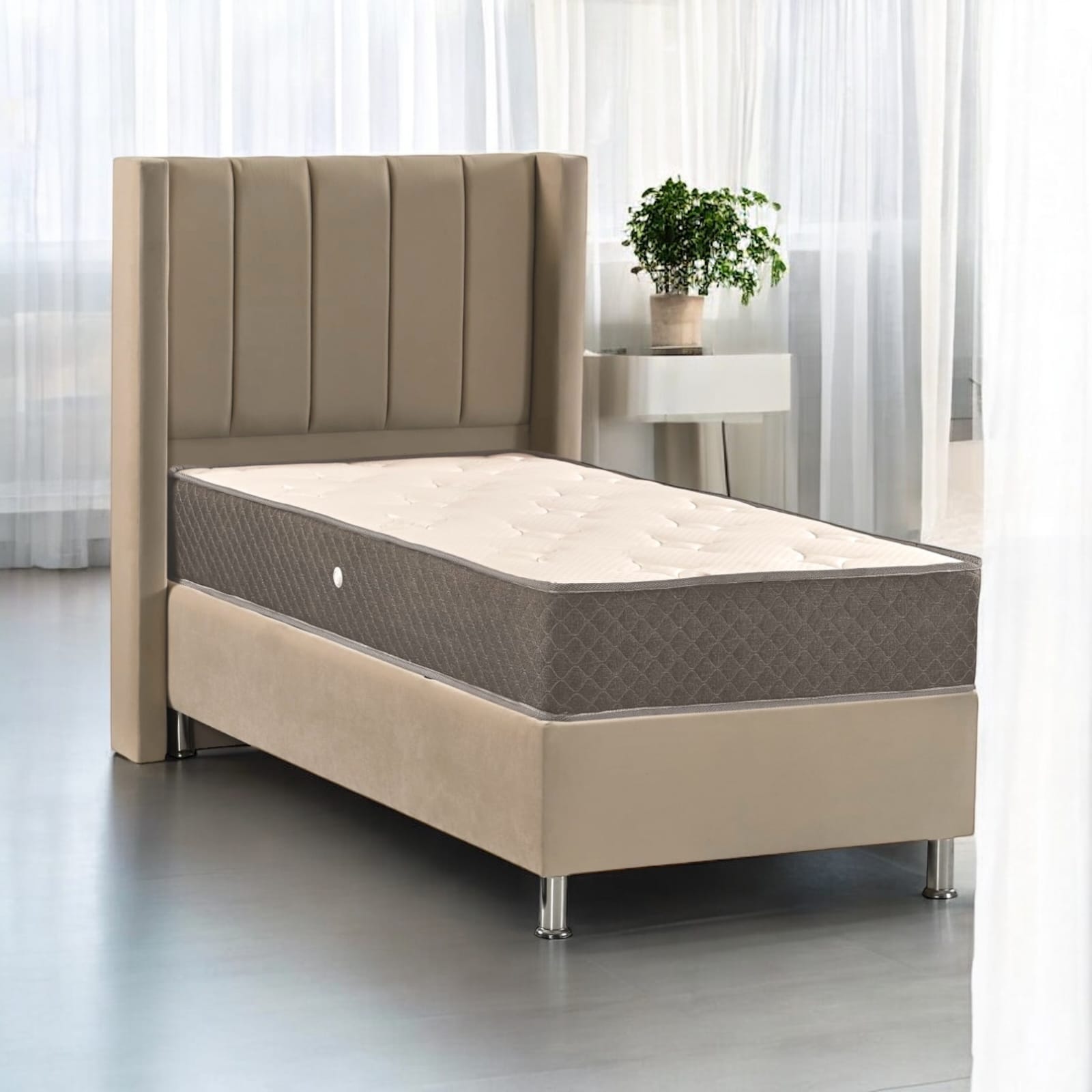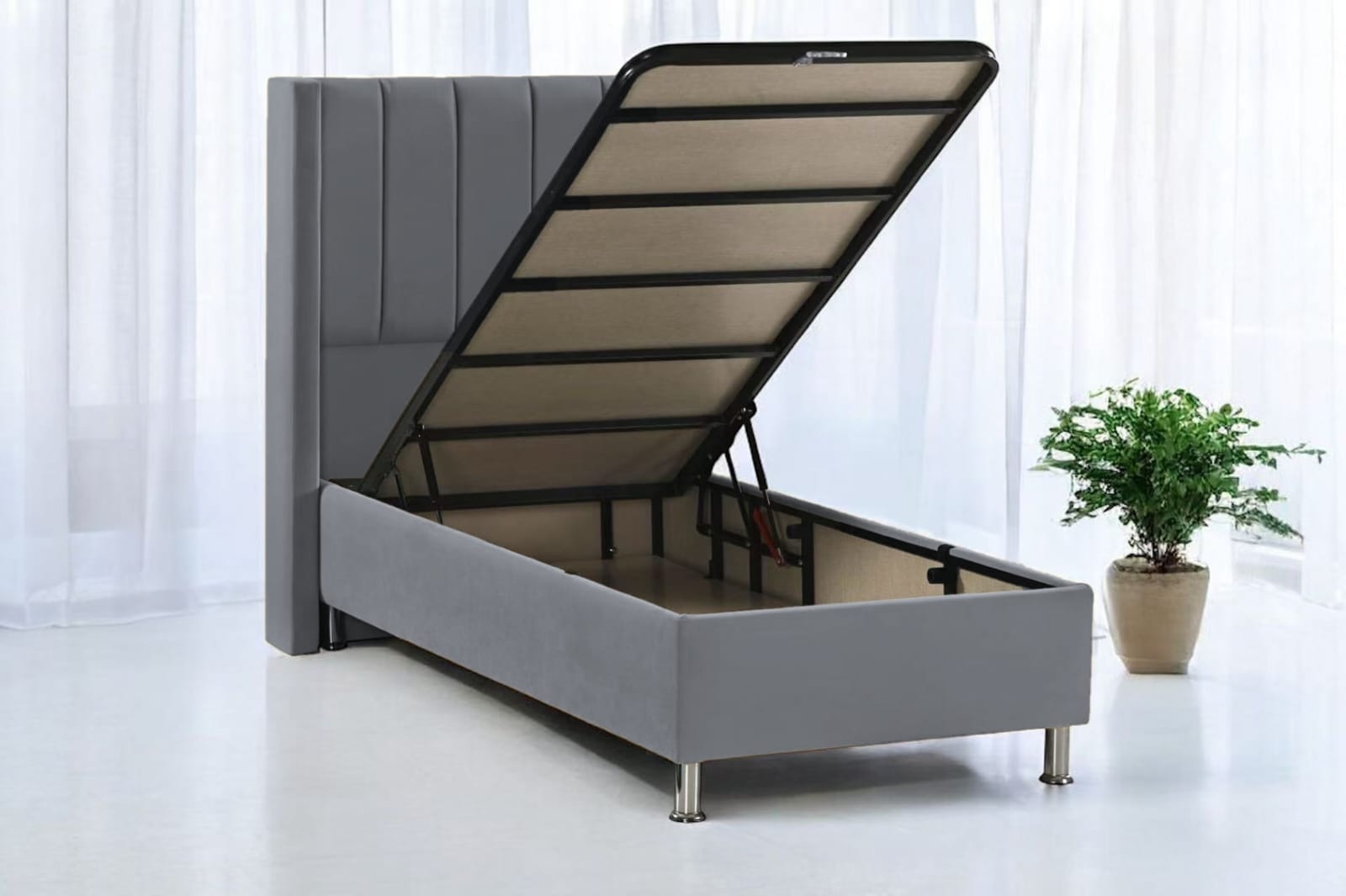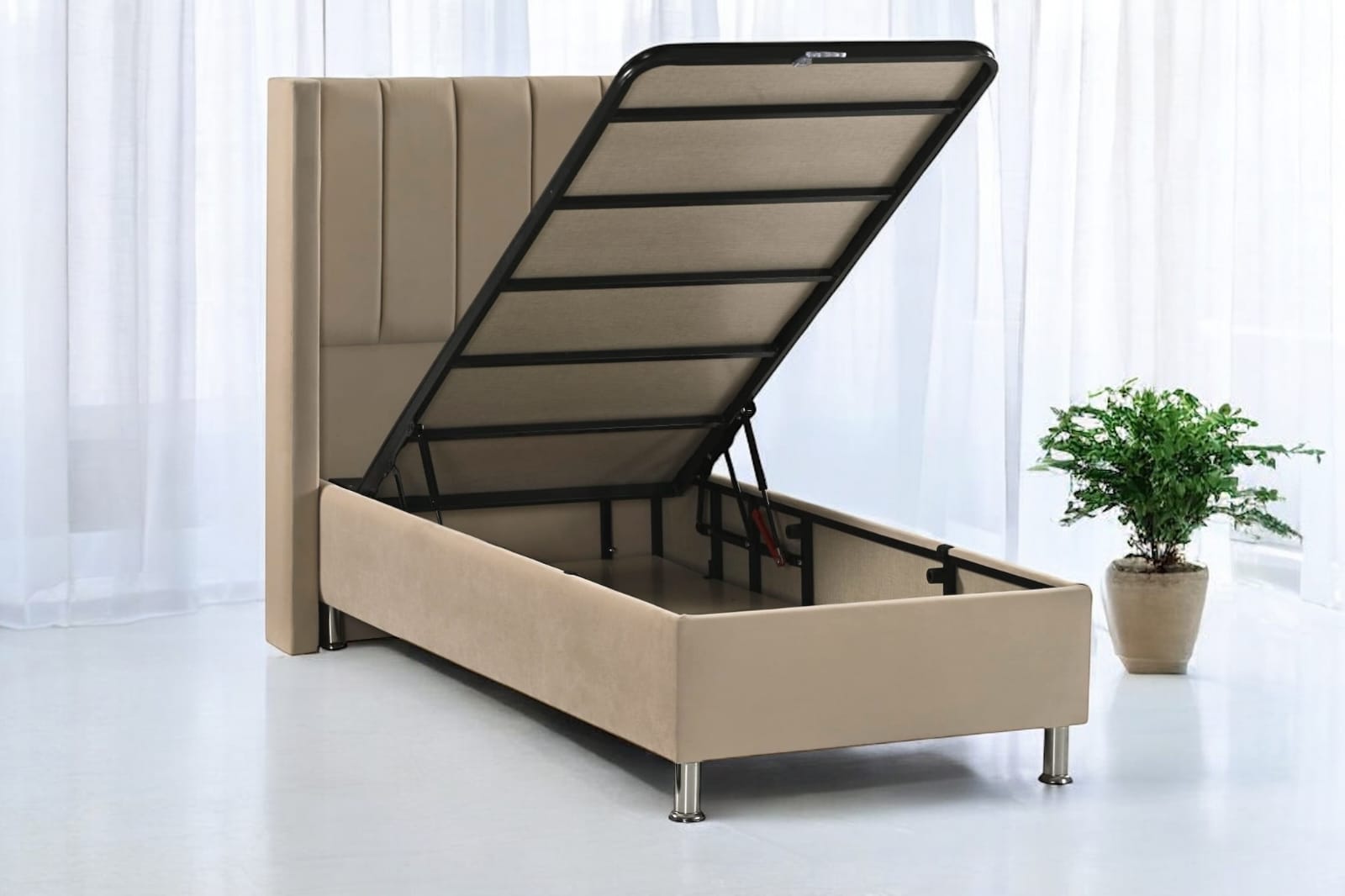 • Lit TOKYO velours taupe 90×190 avec coffre