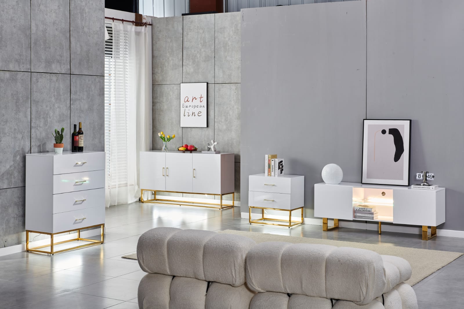 El MEUBLE TV ALYA no es solo un soporte para tu televisión, sino una verdadera pieza decorativa. Aporta un aire de elegancia y exclusividad a tu hogar gracias a su acabado dorado brillante y diseño práctico. Es la elección ideal para quienes desean un mueble de TV premium con estilo distinguido.