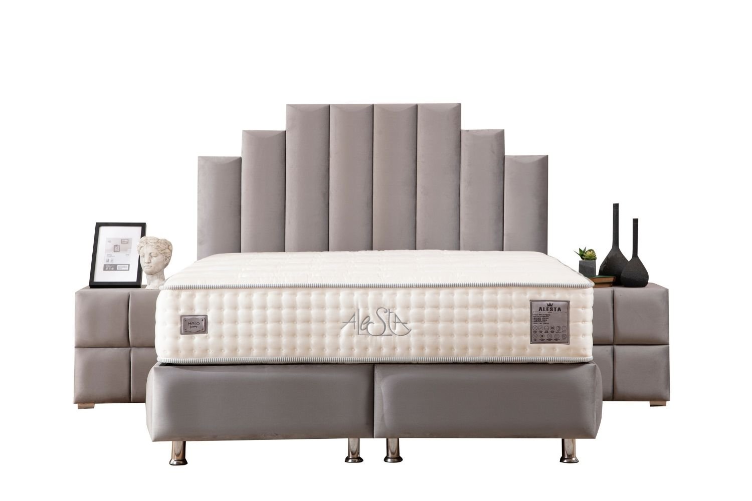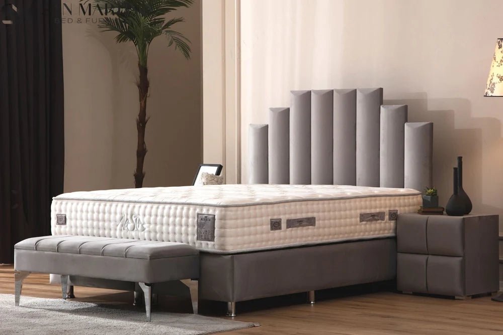 Its elegant headboard, chrome legs, and high-quality velvet upholstery offer a refined yet simple finish. Available in gray, this bed blends seamlessly into any interior style: vintage, modern, or traditional.
