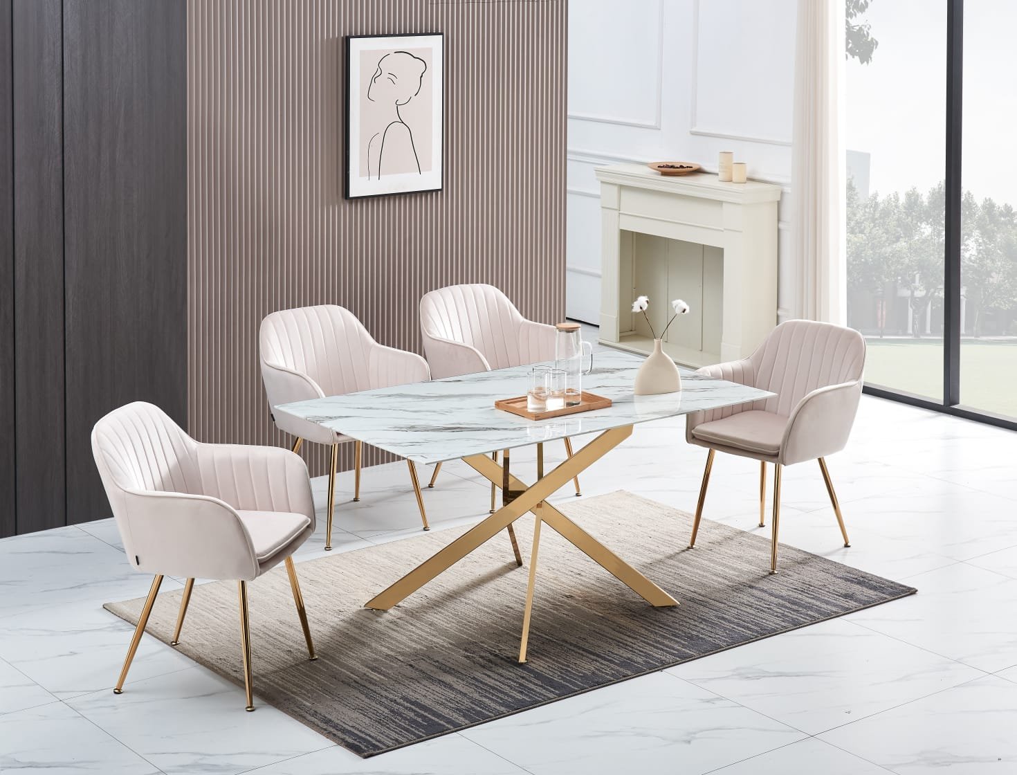 TABLE RECTANGULAIRE JESSICA GOLD MARBRE BLANCAvailability: 100 in stock